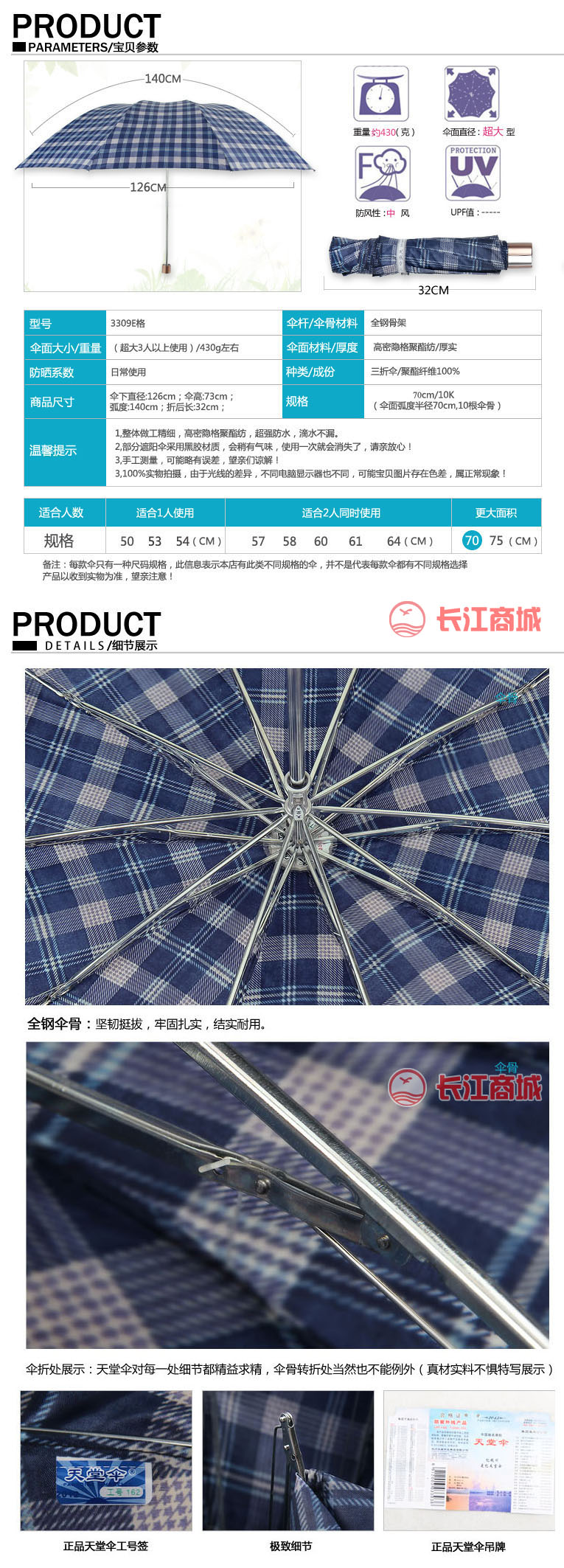天堂3309折叠雨伞