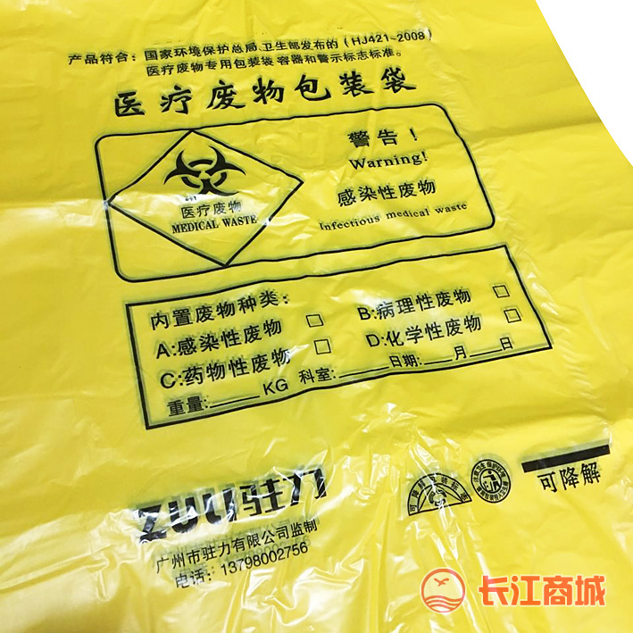 品名:医疗平口垃圾袋 型号:80x100 厚度:加厚 颜色:黄色 包装:50个/扎;10扎/袋
