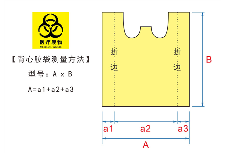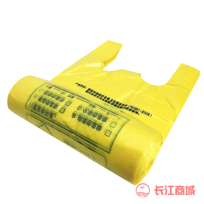品名:医疗背心垃圾袋 型号:32 x 37 颜色:黄色 尺寸:32 x 37 cm 包装:100个/扎