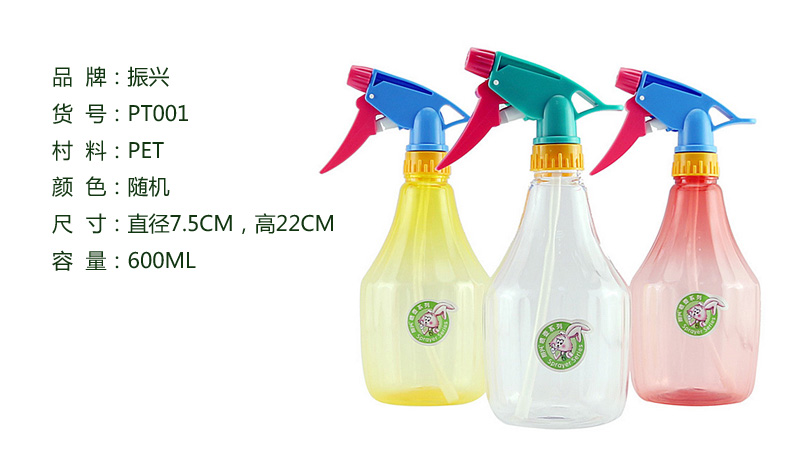 品牌:振兴 货号:PT001 类型:喷壶 颜色:随机 容量:600ML 尺寸:高22cm,φ7.5cm