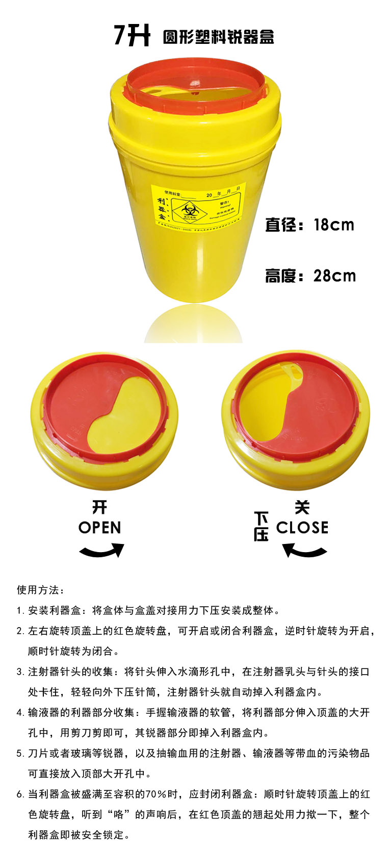 圆形塑料锐器盒