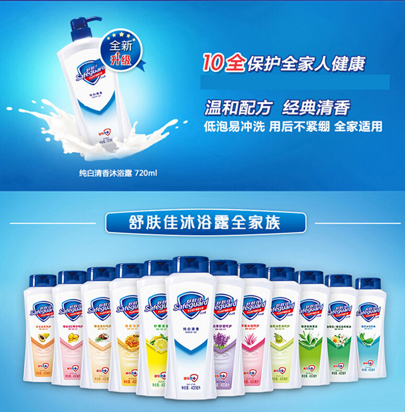 品牌:safeguard/舒肤佳 型号:沐浴露 功能: 清洁 净含量:720mL 适用对象:通用