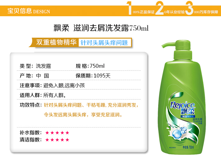 品牌:REJOICE/飘柔 品名:洗发露 净含量:750mL 类型:随机 保质期: 3年