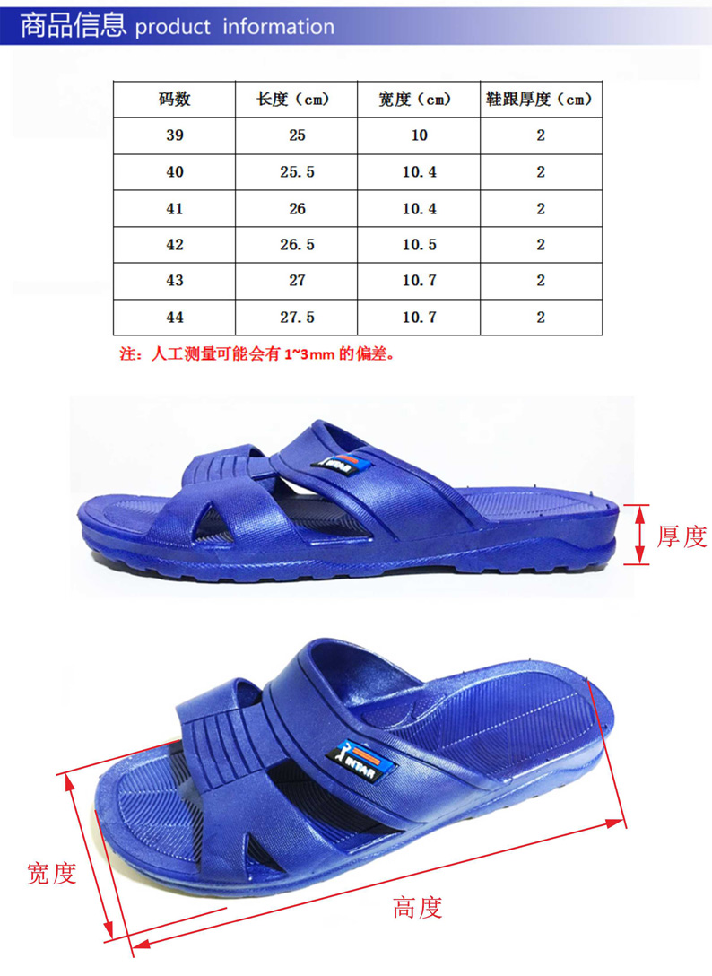 品牌:兴南 型号:1686 名称:男装塑胶拖鞋 颜色:蓝色
