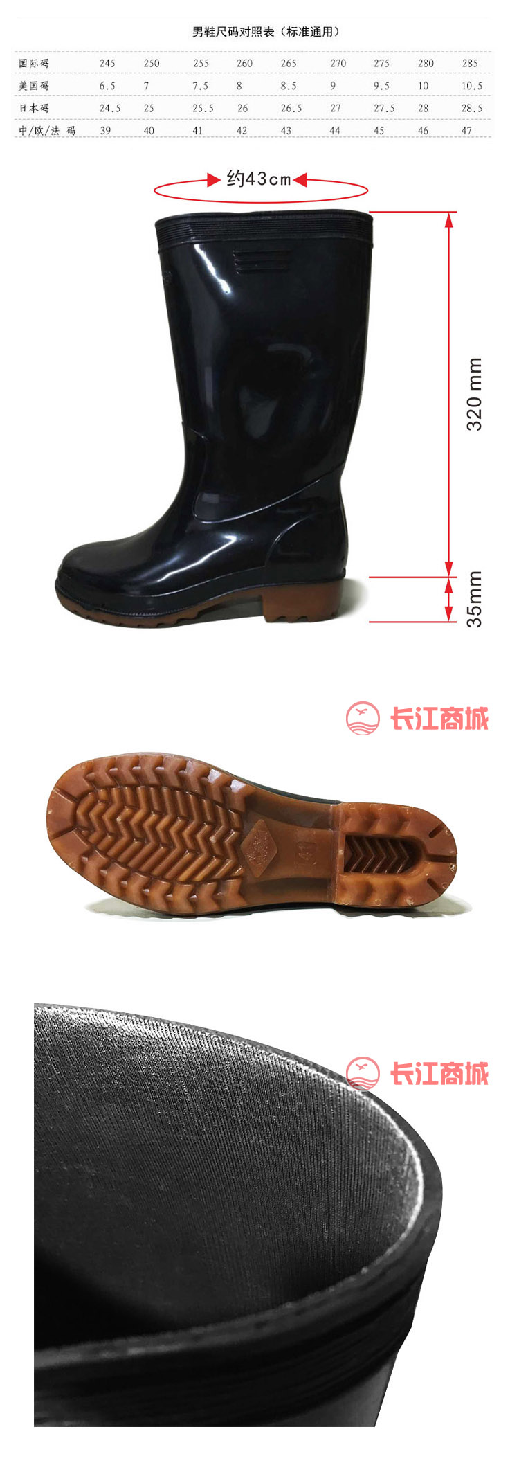 品牌:东江 品名:男装水鞋/雨靴 分类:中筒 颜色:黑色 码数:40/41/42/43/44