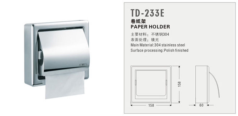 品牌:雅之杰 型号:TD-233E 类型:卷纸座(带盖) 材料:不锈钢304 表面处理:镜面